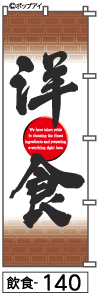 ふでのぼり 洋食(飲食-140)幟 ノボリ 旗 筆書体を使用した一味違ったのぼり旗がお買得【送料込み】まとめ買いで格安