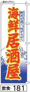 ふでのぼり 海鮮居酒屋(飲食-181)幟 ノボリ 旗 筆書体を使用した一味違ったのぼり旗がお買得【送料込み】まとめ買いで格安