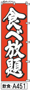 ふでのぼり 食ベ放題(飲食-a451)幟 ノボリ 旗 筆書体を使用した一味違ったのぼり旗がお買得【送料込み】まとめ買いで格安