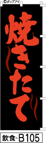 ふでのぼり 焼きたて-黒-赤文字(飲食-b105)幟 ノボリ 旗 筆書体を使用した一味違ったのぼり旗がお買得【送料込み】まとめ買いで格安
