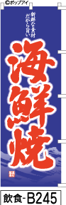 ふでのぼり 海鮮焼き-青(飲食-b245)幟 ノボリ 旗 筆書体を使用した一味違ったのぼり旗がお買得【送料込み】まとめ買いで格安