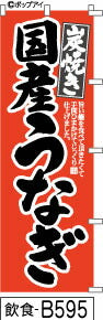 ふでのぼり 炭焼き 国産うなぎ-赤(飲食-B595)幟 ノボリ 旗 筆書体を使用した一味違ったのぼり旗がお買得【送料込み】まとめ買いで格安