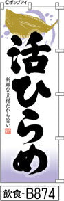 ふでのぼり 活ひらめ(飲食-B874)幟 ノボリ 旗 筆書体を使用した一味違ったのぼり旗がお買得【送料込み】まとめ買いで格安
