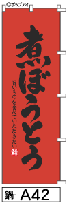 ふでのぼり 煮ぼうとう(鍋-a42)幟 ノボリ 旗 筆書体を使用した一味違ったのぼり旗がお買得【送料込み】まとめ買いで格安