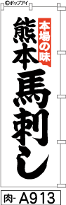 ふでのぼり 熊本馬刺し白(肉-a913)幟 ノボリ 旗 筆書体を使用した一味違ったのぼり旗がお買得【送料込み】まとめ買いで格安