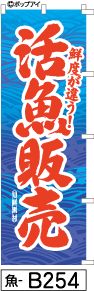 ふでのぼり 活魚販売-青(魚-b254)幟 ノボリ 旗 筆書体を使用した一味違ったのぼり旗がお買得【送料込み】まとめ買いで格安
