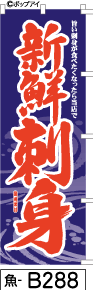 ふでのぼり 新鮮刺身-紺(魚-b288)幟 ノボリ 旗 筆書体を使用した一味違ったのぼり旗がお買得【送料込み】まとめ買いで格安