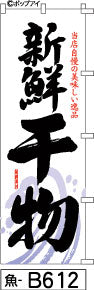 ふでのぼり 新鮮干物 のぼり旗 白(魚-B612)幟 ノボリ 旗 筆書体を使用した一味違ったのぼり旗がお買得【送料込み】まとめ買いで格安