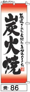ふでのぼり 炭火焼(焼-86)幟 ノボリ 旗 筆書体を使用した一味違ったのぼり旗がお買得【送料込み】まとめ買いで格安