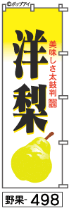 ふでのぼり 洋梨(野果-498)幟 ノボリ 旗 筆書体を使用した一味違ったのぼり旗がお買得【送料込み】まとめ買いで格安
